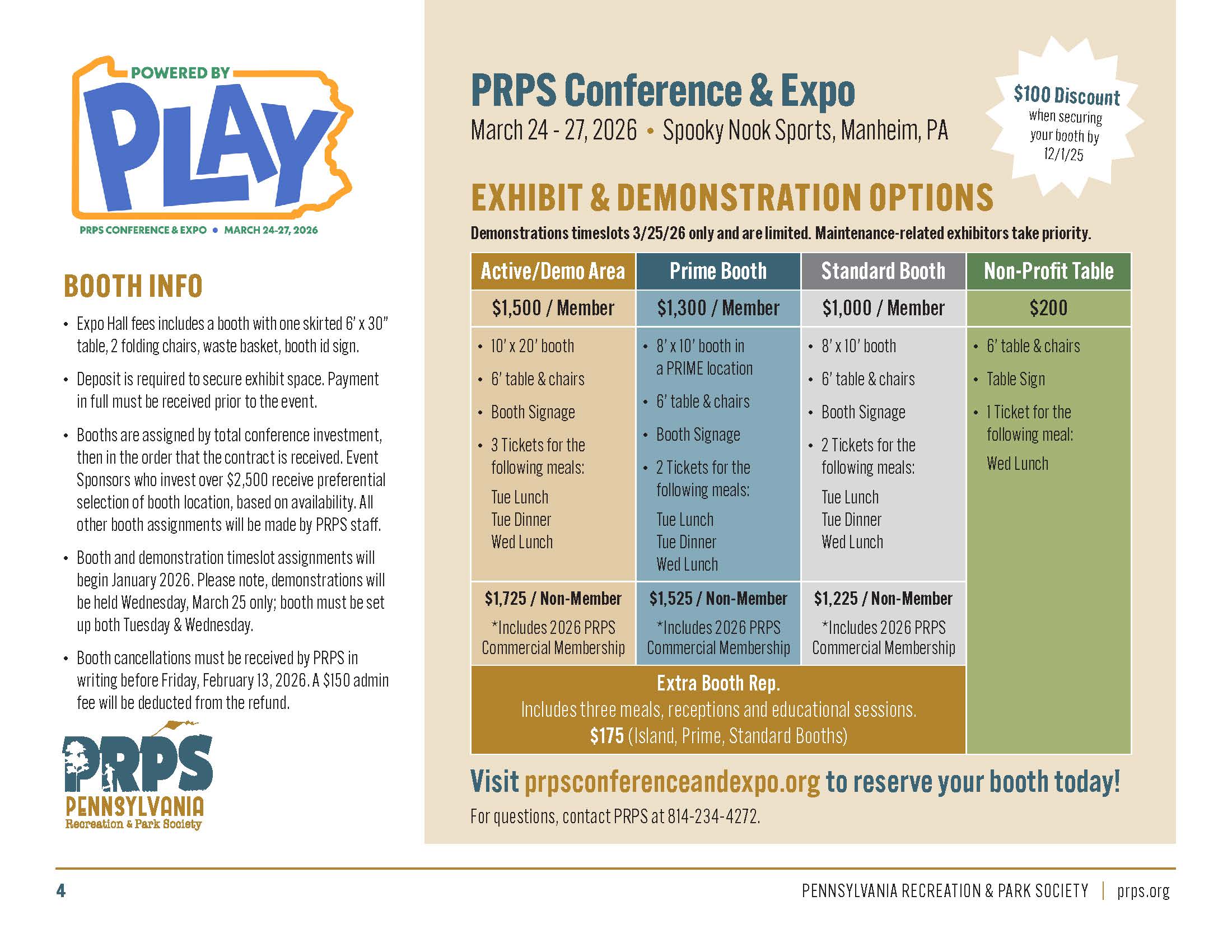 - Booth cancellations must be received by PRPS in writing before Friday, February 13, 2026. A $150 admin fee will be deducted from the refund.